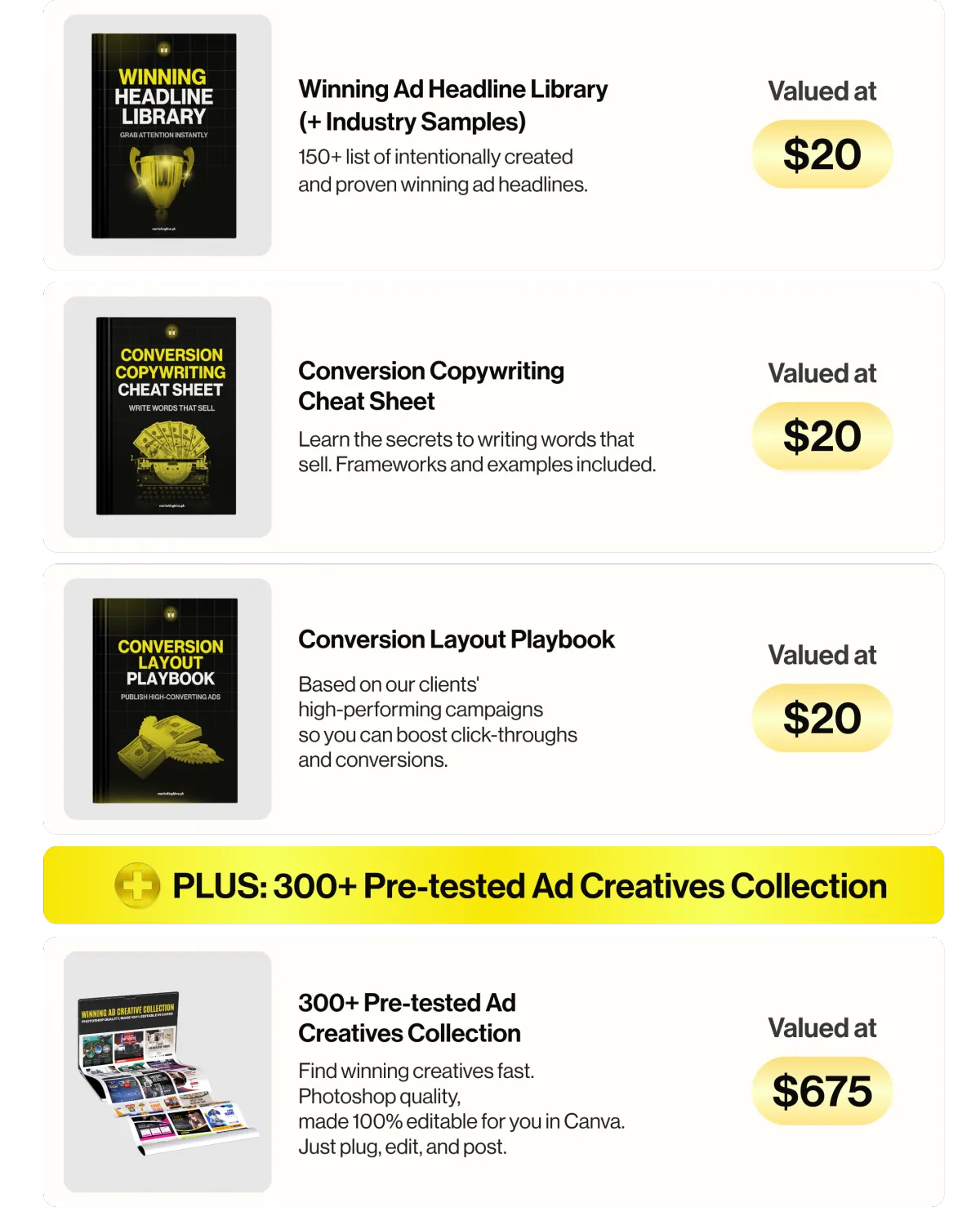 That’s exactly what this system is built for. Each template follows proven ad frameworks and comes with pre-written headlines, captions, and layout formulas so you can focus on your offer, not on guessing what works.